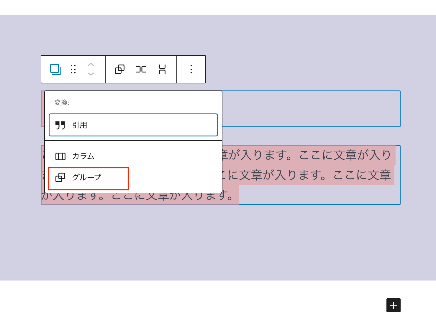 コンテンツをグループブロックでまとめる