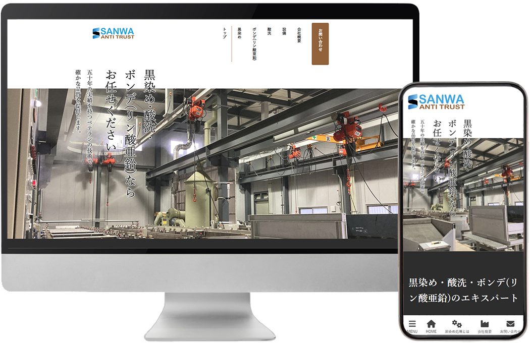 金属製品の加工(黒染め・酸洗・ボンデ(リン酸亜鉛))のエキスパートで、50年の実績があり、伝統的な魅力や強みをより多くの方に知っていただけるよう、サイト構成やデザインをおこないました。