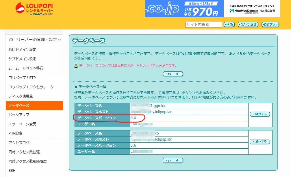 データベースも5.6という過去世代(2013年くらいに出たバージョン)で動いていました。