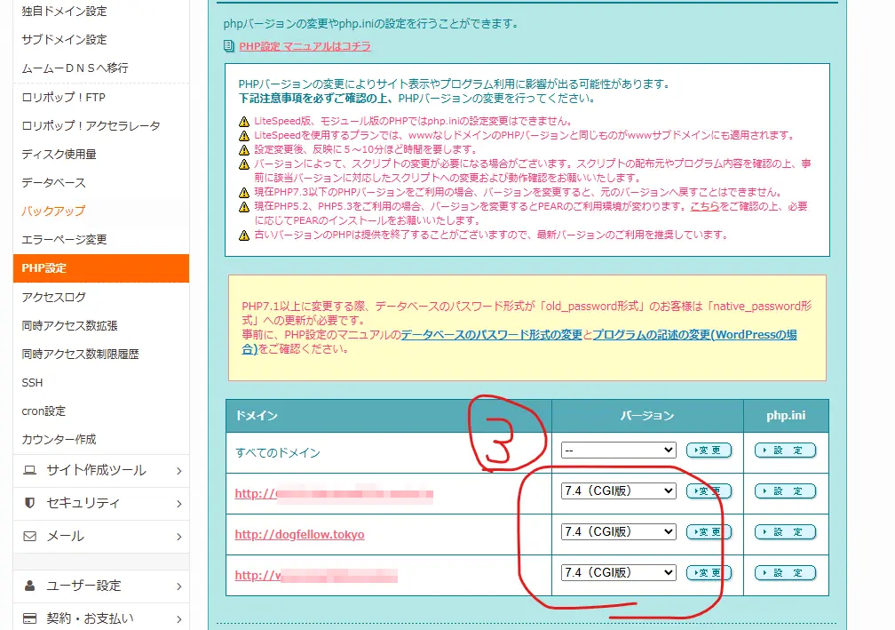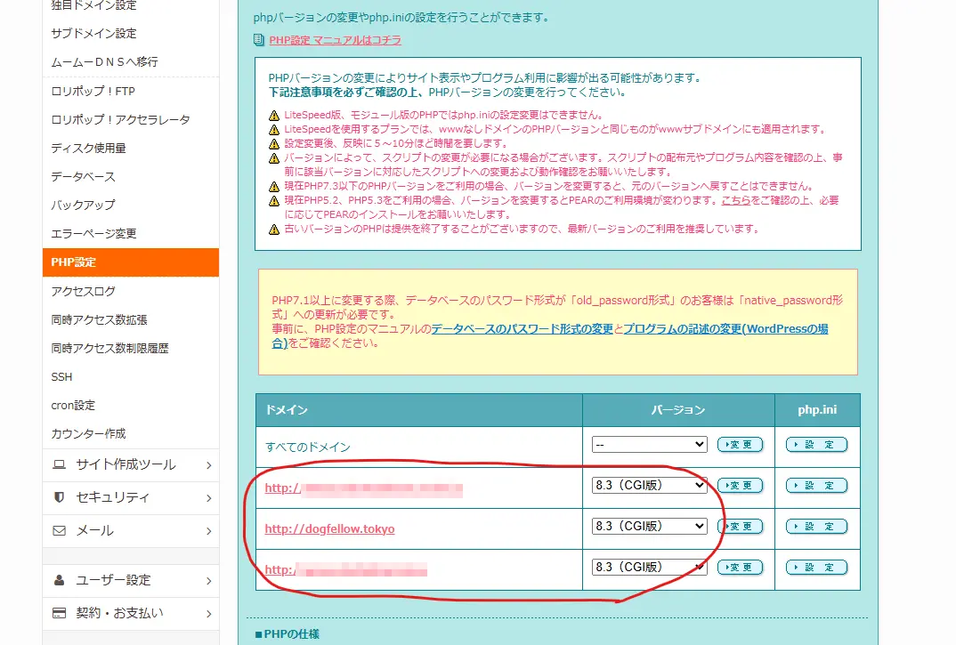 DOGFELLOW様の環境では、PHPのバージョンが7.4(まだ古いPHPで運営?WordPressが動かなくなる前に読む話)に留まっていました。