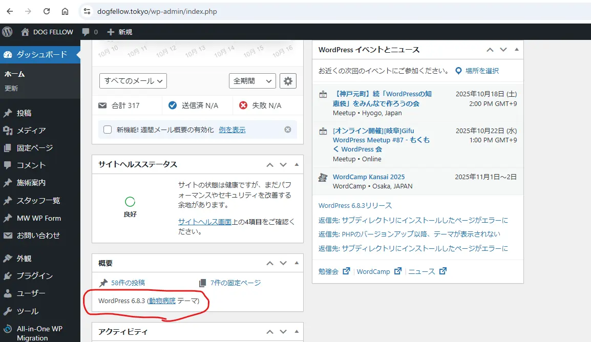 このままでは新しいPHPやプラグインに対応できず、セキュリティ面でも不安が残るため、今回の再構築に合わせてWordPress本体を最新の「6.8.3」へ引き上げました。