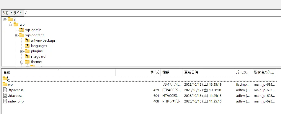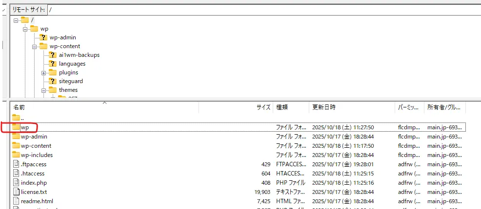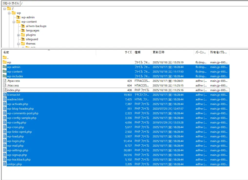 再構築が完了したあと、ドメイン直下の「wp」ディレクトリ以外にインストールされていた旧WordPressファイル群一式は安全に削除しました。