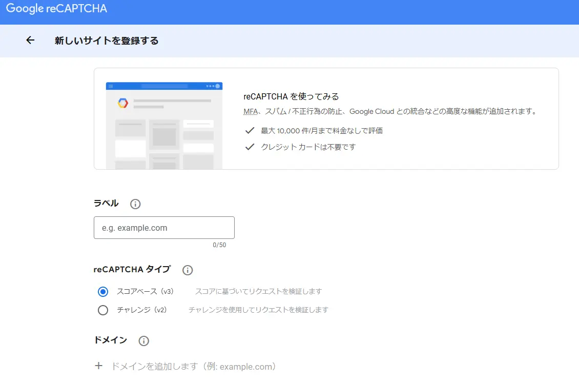 - reCAPTCHAタイプは、スコアベース(v3)で設定