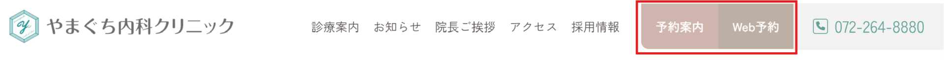 パソコン版ヘッダーメニューおよびスマートフォン版固定ナビゲーションには、「予約案内」「Web予約」ボタンを追加し、