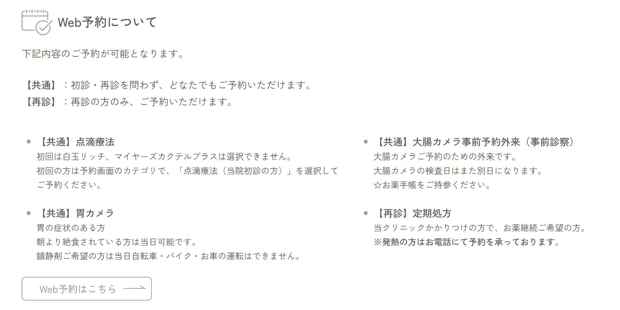 → 「Web予約について」の項目へリンクし、予約前に詳細を確認可能 - 「Web予約」ボタン
